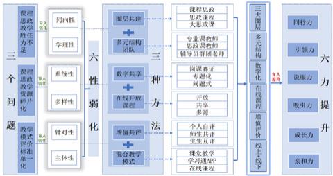 结合实际和教学资源基础,在宏观上进行课程建设主体圈层规划,着力解决课程思政、思政课程、大思政课相互配合问题 ; 在中观上组建结构化课程教师团队,着力提升教师课程思政理念、教学设计与实施能力;在微观层上进行立体化课程思政资源库构建,着力解决课程思政在线开放课程的共建、共享、共管问题 . 具体如下