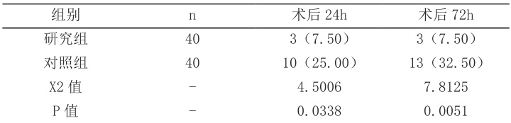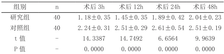 2.1 两组患者疼痛评分对比研究组疼痛评分较低, P<0.05 ,见表 1.