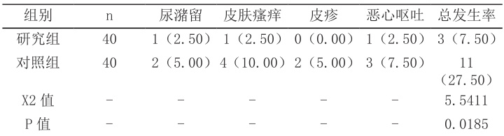 记录尿潴留、皮肤瘙痒、皮疹、恶心呕吐等不良反应发生率。