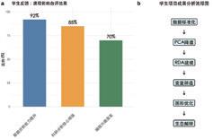 学生匿名反馈中,有超过 90% 的学生认为课程帮助其“显著增强了对数据分析的操作能力”,超过 85% 的学生表示“课程提高了其独立分析生态问题的信心”,超过 70% 的学生表示“课程激发了对编程的兴趣,愿意将R 语言作为科研工具继续学习”(图2a)。