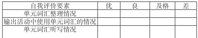 通过单元词汇学习评估表,学生可以进行自我评价了解自己的词汇掌握情况,从而及时发现问题,有针对性的纠正。