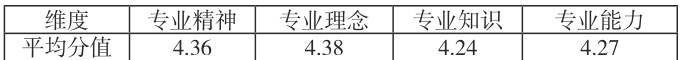 通过问卷调查,并借助 SPSS 工具对数据进行分析,厘清骨干教师在专业精神、专业理念、专业知识、专业能力的状况,同时结合“课堂观察”等,诊断出存在的共性薄弱点和个性成长需求,制定针对性的提升策略。例如,我们通过调查量表对作者所在区域的骨干教师进行问卷调查和访谈,再通过课堂观察等形式多方面进行调研和数据分析在专业精神、专业理念、专业知识、专业能力四个维度的平均分数据表现如下表。