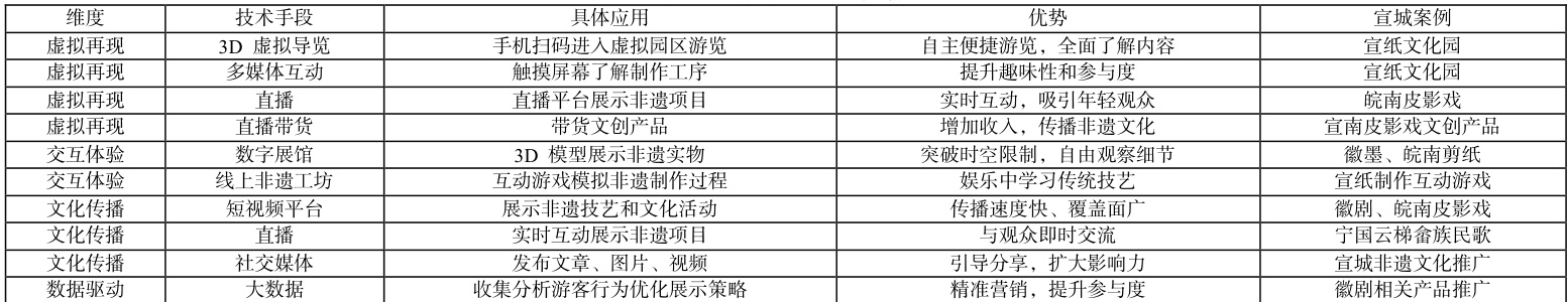 综上,宣城非遗旅游数字化需以“技术-文化-产业-机制”四维协同破局:通过标准化建设打通数据壁垒,以技术融合深化文化叙事;构建“数字非遗 IP+衍生价值链”的产业生态;完善人才引育与政企社协同机制,最终实现文化基因活态传承与区域经济增值的双向赋能。