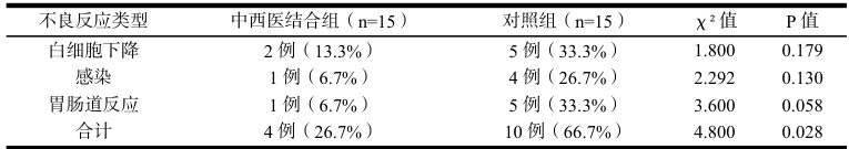 安全性方面,本研究发现中西医结合组在胃肠道不适、白细胞减少、继发感染等方面的发生率低于单纯西医组,显示出中药可能对化疗药物的不良反应具有一定缓冲作用。相关研究指出,益气养阴类药物可对骨髓造血功能起到调节作用,减少免疫抑制剂所致的骨髓抑制,间接降低感染风险。
