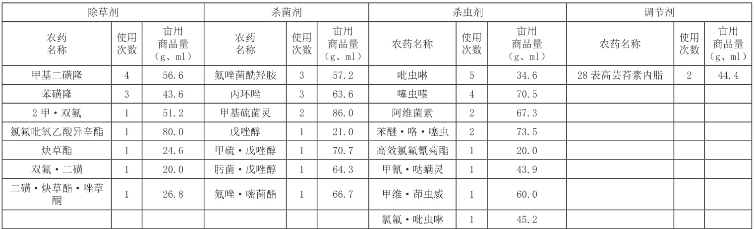 注:表中农药亩用量为调查使用该农药所有用户商品量的平均值。