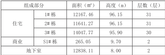 沙河城二期二区工程为框架及剪力墙结构,总建筑面积约 51077.56 ㎡,由 3 栋高层住宅、1 栋商业楼、2层地下室组成,抗震设防烈度为 6 度,建筑耐火等级为一级,地基基础设计等级为甲级(1#、2#、3# 栋)和乙级(其余建筑),具体见下表 1。基坑支护范围为 1-2 层地下室,支护总长度约 555m,基坑开挖深度介于2.55-10.47m 之间,呈不规则多边形,安全等级划分为一级(EF 段)、二级(A\~E、F\~K 段)以及三级(CK 段),重要性系数取值分别为1.1、1.0、0.9。