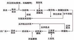 应急投加(检炭、高酸钾) 预风筑水-水 砂 预 →合一凝论房 排 按触地 穿孔排泥行车排污处理系统反冲洗水用 反冲洗水 出厂水水 水 活性发 秒地聚 池次氧酸销 主氧