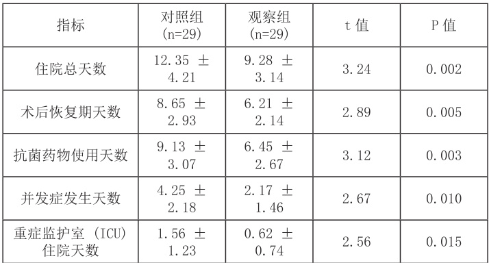 2.2 住院时间观察组患者的住院时间明显短于对照组(P<0.05)。见表2。表2 :住院时间