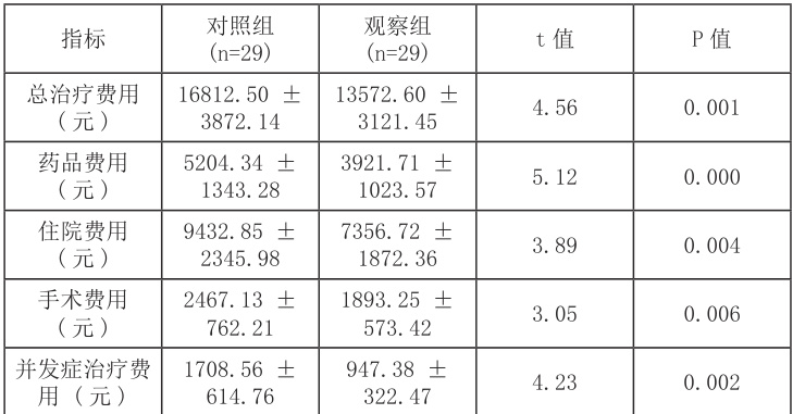 2.3 治疗费用观察组患者的治疗费用低于对照组(P<0.05)。见表3。表3 :治疗费用