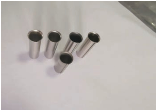 采用传统的刚性模具旋压或挤压的方法将不可避免地破坏已涂敷好的润滑涂层。本文采用电磁脉冲技术完成翻边工艺,由于没有模具与工件接触,因此不存在划伤和磨损。电磁脉冲成形技术是利用电磁力来成形工件,而不是机械力。与传统冲压工艺相比,电磁脉冲成形具有众多的明显优势,比如能显著增加材料的成形极限,减小回弹和抑制起皱等。本文分析不同电磁力对变形的影响,并试制专用模具和夹具开展物理试验,成功制备了如图3 所示的样品,产品外观质量和尺寸精度满足要求。