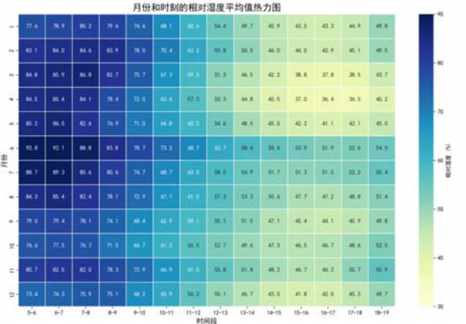 晾制日晒面需控制生面条的失水速率,关键是保证面条的均匀干燥。由于日晒面条主要是一天内完成,为了更好地了解一天之内的湿度变化,统计分析了逐月平均5-19 时之间的平均相对湿度。