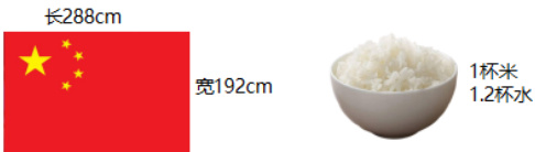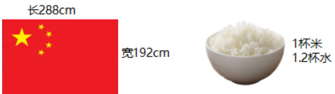 情境与条件:出示国旗的长和宽的长度,蒸米饭放入水和米的杯数。