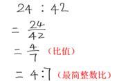 ④ 求比值:是比的前项与后项的商,它是一个数,通常用分数表示,有时也用小数和整数表示。