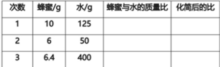 笑笑配置蜂蜜水,配置了3次如下表,请你把表格补充完整