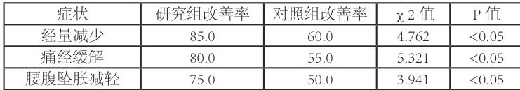 研究组经量减少(85%vs60%)、痛经缓解 (80%vs55%) )更优(P 均 <0.05) )。