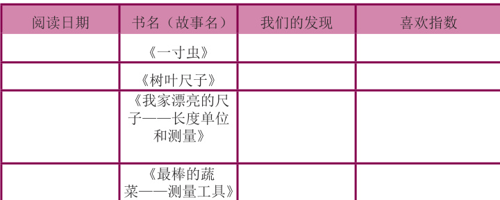 测量是科学区域中需要幼儿掌握的技能。教师更要注意筛选绘本,帮助幼儿学会了解测量的奥秘。 教师根据主题活动的进展情况向幼儿重点推荐绘本故事,如,在主题活动中期推荐绘本《树叶尺子》巩固幼儿对测量方法的理解和认识 : 在 测量活动后期,向幼儿推荐绘本《一寸虫》,让幼儿了解尺子在测量活动中的意义与应用。