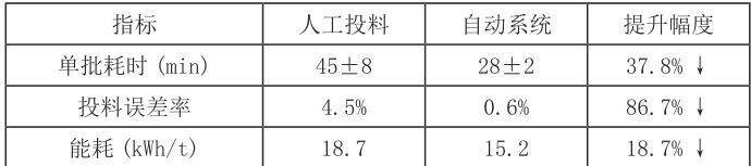 给料控制:螺旋给料机采用矢量变频驱动(ABB ACS880),结合模糊PID 算法实现动态补偿,实测投料RSD 值 ⩽0.38% ( n=30 )