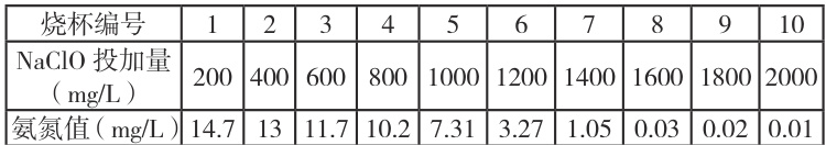 然而实际去除效果并不理想,分析原因为投加量不足、反应时间等。为切实探究次氯酸钠对氨氮的去除效果,合理投加药剂和控制成本,进行以下相关实验。