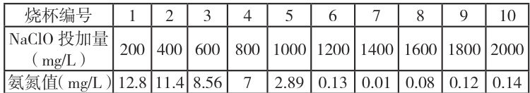 1、次氯酸钠对原水中氨氮的处理去除实验