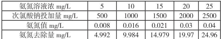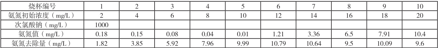次氯酸钠对氨氮降解效果的实验研究