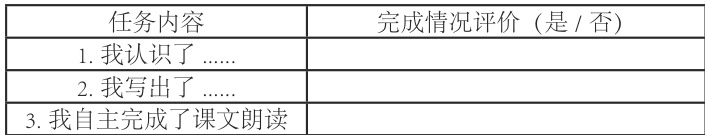 (1)任务一:识字与写字,做到认识并能够工整的写出 15 个生字和20 个词语,自主完成课文朗读,教学评价内容见表1。