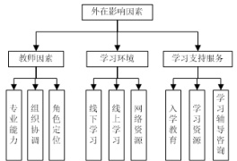 教师的专业素养与教学能力直接影响教学效果。专业扎实、讲解生动的教师能将抽象的思政理论变得通俗易懂,激发学生学习兴趣;而教学方法单一、照本宣科的教师,易让学生感到枯燥乏味,降低学习积极性。此外,教师的态度和评价也影响学生动机,鼓励性的语言和公正的评价能增强学生自信心,激发学习动力。开放教育多采用线上学习模式,网络平台的稳定性、资源的丰富性和易获取性会影响学习体验。若平台频繁卡顿、资源陈旧,会使学生产生挫败感,削弱学习动机。学习支持服务同样关键。完善的学习支持服务,如及时的学习指导、答疑解惑、心理辅导等,能帮助学生解决学习中遇到的问题,让学生感受到被关注和支持,从而增强学习动力。反之,支持服务不到位,学生遇到困难无法解决,就可能放弃学习。如图1 所示。