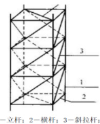 在支撑架设计阶段,为提高支撑架承载力,本工程可选择钢管脚手架(图 2),同时对受力范围进行计算。在受力计算阶段,需考虑胸墙的体积和混凝土的密度,并从多方面对受力范围进行计算,如胸墙自身的负荷能力;支撑架使用范围较广,当施工人员进行作业时,需对其产生的荷载力进行计算;同时,在混凝土浇筑过程中,浇筑的高度和速度会产生一定的冲击力,从而增加了支撑架的负荷力。