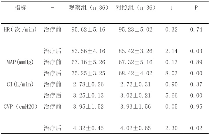 治疗后,观察组病患的血流动力学指标优于对照组,