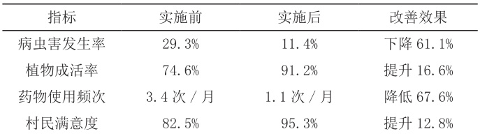 以云南省某县的 W 村为例,该村于 2023 年起试点实施村庄绿化病虫害综合防治体系,开展“前期规划—动态监测—分类治理—集中评估”全流程治理。数据对比如下: