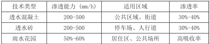 表2 雨水滞留与渗透技术