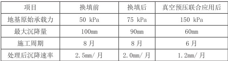 表2 真空预压与换填技术联合应用数据表