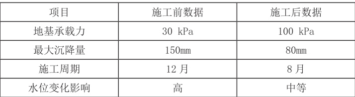 在某个城市针对低承载力软土地基的处理项目里,此地区初始的地基承载力达 30kPa ,施工方借助真空预压技术加以处理,且与传统的地基加固技术协同运用,借助真空预压处理后,地基的承载能力上升至 100kPa ,沉降量实现大幅减少。经施工前后沉降数据对比显示,沉降最大值为 150mm ,实施真空预压处理之后,最大沉降量削减至 80mm ,该项目顺利成功实施,既提升了地基承载的能力,同时减少了施工阶段的不确定情形,增进了工程施工的质量水平。详情见表3。