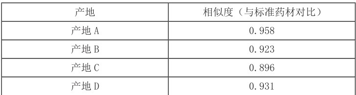 (2)指纹图谱比较:通过比较不同产地夏枯草药材与标准药材的指纹图谱,可以看出各产地药材之间的质量差异。例如,产地A 的夏枯草药材与标准药材的相似度最高(0.958),而产地 C 的相似度相对较低(0.896)。这可能与药材的生长环境、种植方法以及采收时间等因素有关。