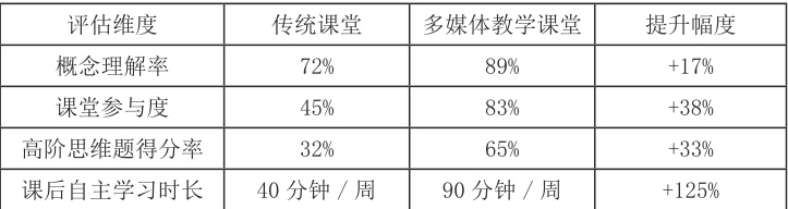 通过系统化实施多媒体教学策略,数学课堂在知识理解、能力培养、学习兴趣等方面取得显著成效。以下是基于教学实践的具体成效总结: