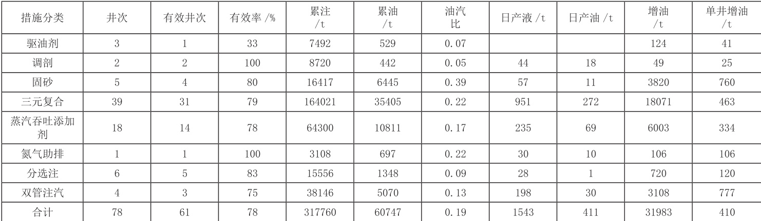 表2 井组实施工艺措施表