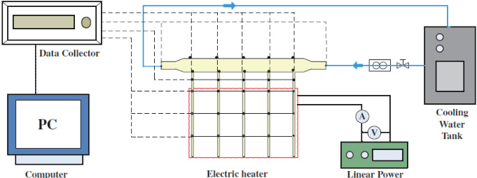 具有结构紧凑、均温性强、导热系数大等优点,作为一种新型的传热元件,热管可广泛满足国家重大战略发展需求、新 / 可再生能源、军事装备、航空航天、微电子、信息技术、智慧储能、人工智能、健康医疗、节能环保等领域 [ 8, 9]。热管的主要热传递方式为相变传热,其蒸发端受热使其内部工质吸热蒸发沿着蒸汽腔传递,在冷凝端发生冷却并由毛细结构的毛细力作用回流至蒸发端,持续循环工作。通过模拟实验(模拟实验的设备示意图详见图 1[10]),分别研究热管冷却段换热温度对于热管毛细结构中液体黏度及流动速度的影响规律,以及蒸发端换热温度对于管体内蒸汽黏度及流速的影响规律。通过科研模拟实验的加入,帮助学生了解化工前沿换热材料的性能、用途和我国科研工作者已经取得的成绩,增加学习和专业的兴趣,同时增强民族自豪感。在专业技能方面,探究温度对液体和气体 2 种不同流体黏度的影响,进而研究黏度对流体流速即传热性能的影响规律。最终掌握不同流体黏度的核心影响因素,加深认识即黏度的本质就阻碍流体流动。