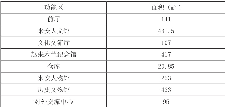 表1 :来安县博物馆功能区面积分布