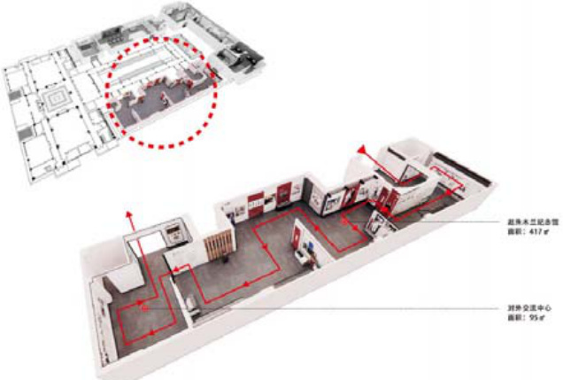 环形流线设计通过整合展厅布局形成闭环路径(前厅→人文馆→人物馆→纪念馆→休息区→出口),有效解决当前" 放射- 枝状" 模式的断裂问题。具体实施中: