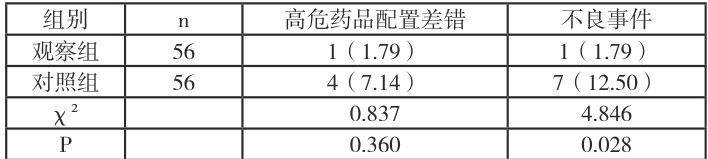 对照组中的 56 例患者在用药的过程中未实施高危药品警示标识管理。观察组中的56 例患者则在用药中加强高危药品警示标识管理。