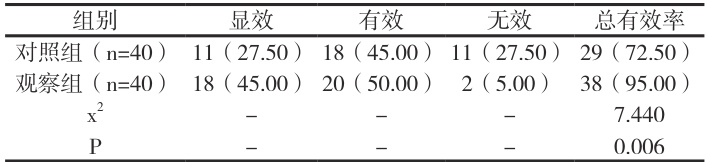 观察组治疗有效率高于对照组( P<0.05 )。如表1 所示。