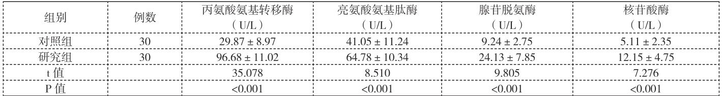 表1 两组生化指标检验结果对比(