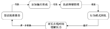 认知偏差会引发焦虑、抑郁等情绪问题[8],严重影响大学生的学习、生活和发展。长期处于信息茧房影响下的大学生,受信息过载与负面强化的不断影响,认知模式会逐渐变得僵化,更容易陷入“非黑即白”的思维困境。同质化的负面信息不断挤压大学生的心理空间,削弱他们的情绪调节能力,偶尔的挫折就可能让他们陷入自我否定的消极状态中,从而加速焦虑与抑郁情绪的产生。这种由认知窄化到情绪恶化的连锁反应,如果没有得到及时地干预,很容易陷入自我否定的恶性循环,不仅阻碍其有效学习,更可能损害大学生的社会功能和长期发展的潜质[9]。