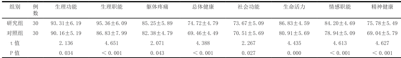 2.2 两组的 SF-36 评分指标比较