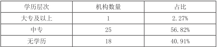 目前通过人才学历结构分析、人才供需矛盾分析等方面对达州市老年护理专业人才培养现状进行分析发现:达州地区 44 所养老机构的调研数据显示,老年护理人员学历层次普遍偏低。其中,仅有 1 所机构(占比 2.27%)的护理人员学历集中在大专,其余 43 所机构(占比 97.73%)的护理人员以无学历或中专学历为主(见表 1)。这种低学历结构导致护理人员在掌握专业知识、适应智能化护理设备操作等方面存在明显不足,难以满足老年人日益多样化的护理需求。