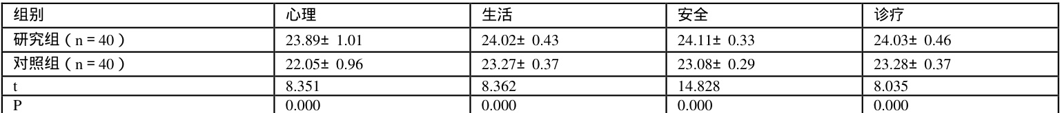 研究组护理质量得分高于对照组( P<0.05 )。见表2。