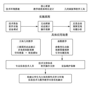 教学模式的实践应用关键在于技术环境的搭建和教学流程的系统化设计,以广东省东莞市经济贸易学校的信息技术与数学教学融合实践为例该校程巧兰老师在中职数学课堂中运用几何画板等软件工具,通过动态展示几何图形的变化过程帮助学生直观理解抽象的数学概念,在立体几何教学中教师利用几何画板制作了三维图形的动态演示课件,学生通过操作可以观察几何体从不同角度的投影将空间想象转化为视觉感知,在函数教学环节教师运用动态几何画板的参数变化功能让学生观察函数图像随参数变化的规律,引导学生在观察中发现问题与分析问题,整个教学过程遵循“技术准备 - 互动探索 - 反思总结”的实施流程,同时学校还建立了完善的技术支持体系配备专业的信息技术人员协助教师解决软件操作和设备维护问题确保教学活动的顺利开展,信息技术工具与数学教学内容实现了有机融合构建了以学生为主体的探究式学习环境。(见图1)