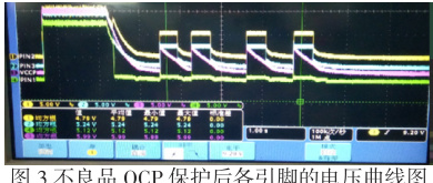 (4) 代换排查法 : 更换 IC3 和周边主要器件,不良现象还是与之前一样。更换 ST 的物料后,OCP 测试恢复正常。但是测量 TI 物料各引脚参数均正常。目前还无法判断是TI 物料造成的不良,还需要更进一步分析原因。