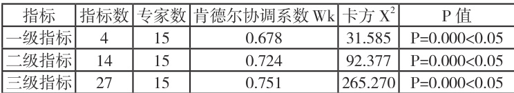 表 2 各级指标的肯德尔协调系数