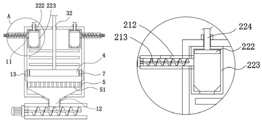 223. 储料斗 224. 连接件 32. 搅拌桨