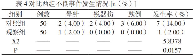如表 2 所示:对照组不良事件发生率 14.00%,观察组发生率2.00%,结果比较 P < 0.05。